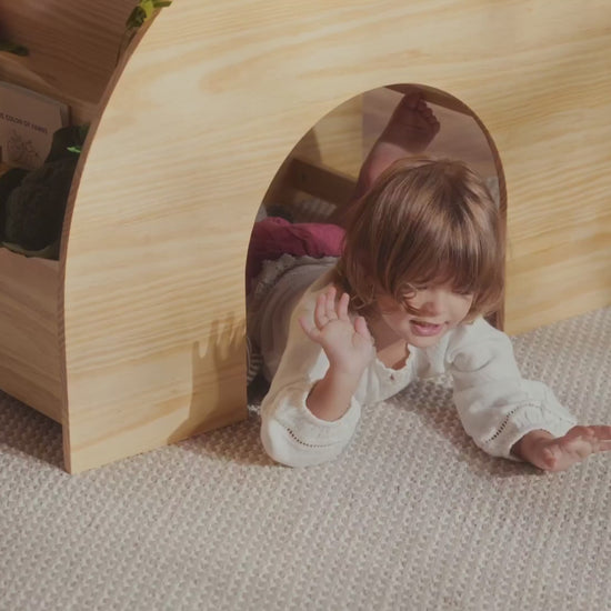 A smart piece of Montessori furniture that turns reading into an adventure. Designed at childβs eye level, it encourages independence, creativity, and a lifelong love for books β while also doubling as a fun play station.
